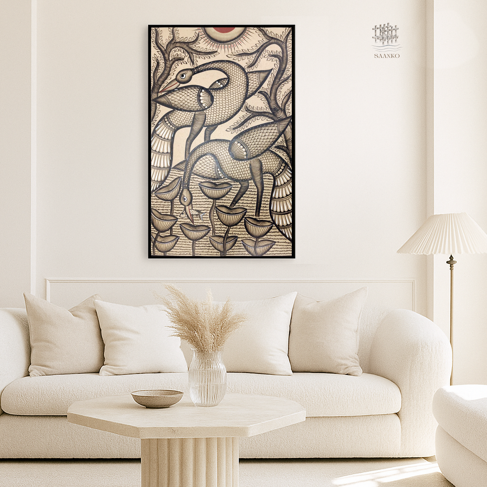 This uniqueness is what defines Saanko — when you acquire a painting, you are not purchasing a reproduction but a living tradition, where the artwork you receive will be exclusive to you alone. Every canvas carries the story of the artisan, the culture it represents, and the individuality of handcraft.