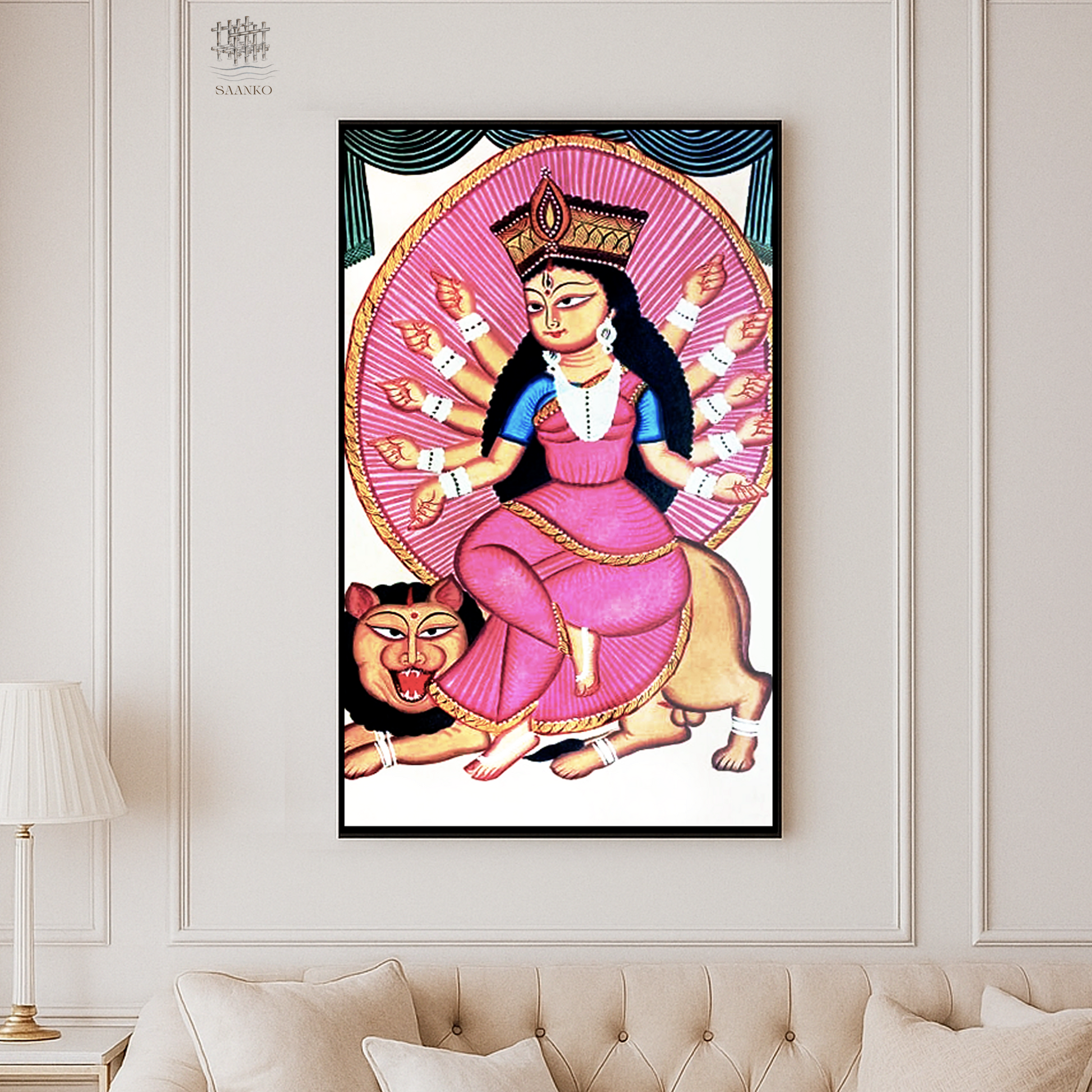 By combining photographic realism with the painterly tradition of Bengal, this work embodies the fusion of past and present. It transforms a devotional image into a gallery-worthy statement piece, balancing power with serenity in every stroke.